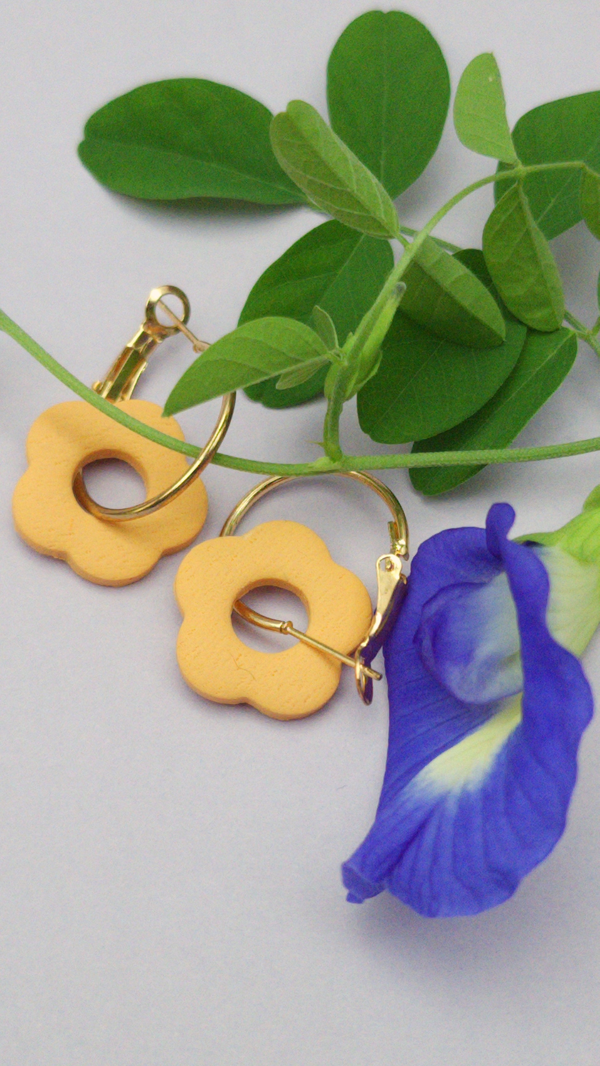 Say hello to Fall Oak Bloom, your new favorite everyday earrings with a subtle seasonal twist. Shaped like sweet, simple flower in a soft fall oak hue and set on elegant golden hoops, these earrings are the perfect nod to crisp mornings, cozy layers, and all things autumn.