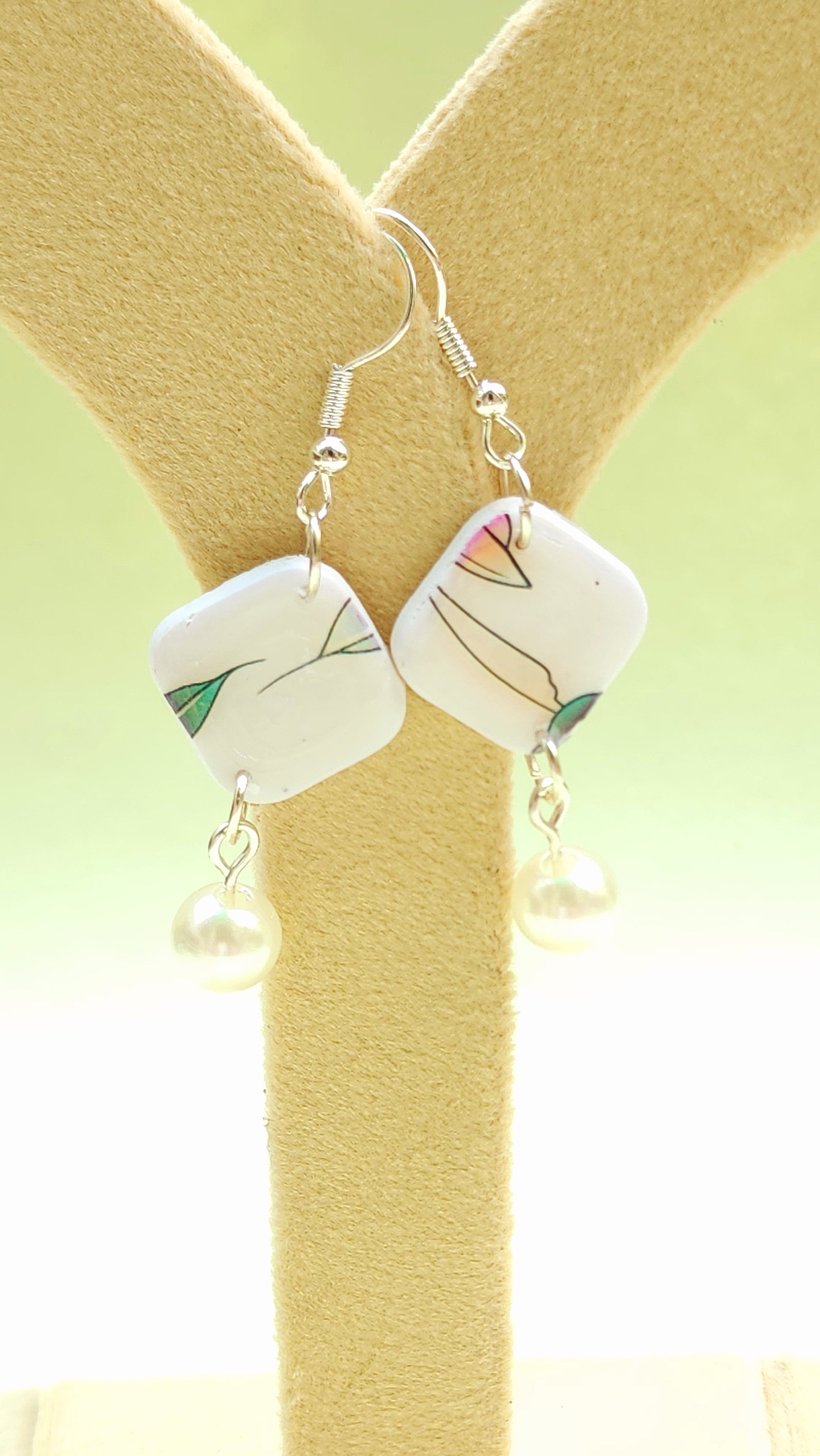 Leaves on White Pearl Dangles