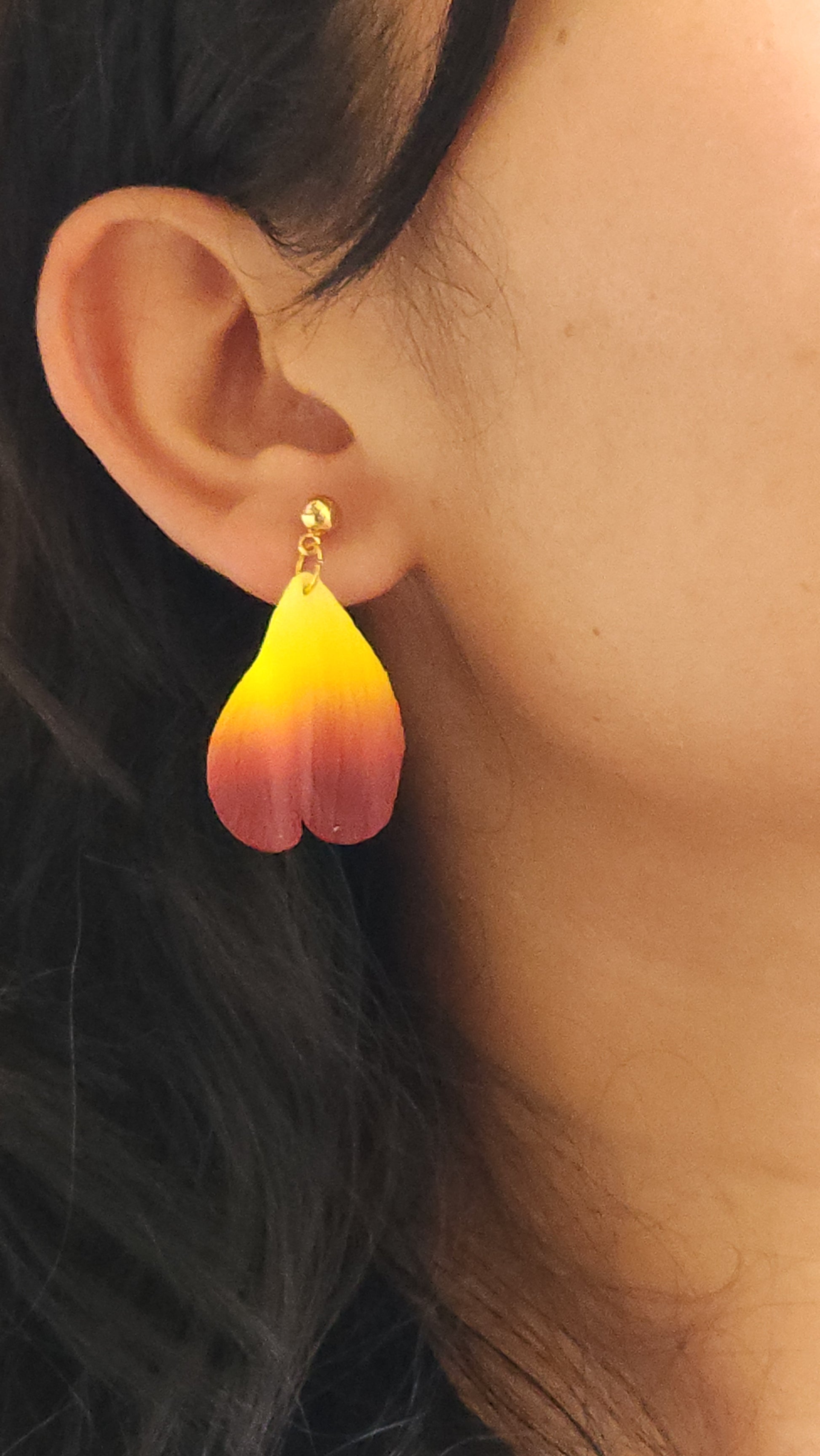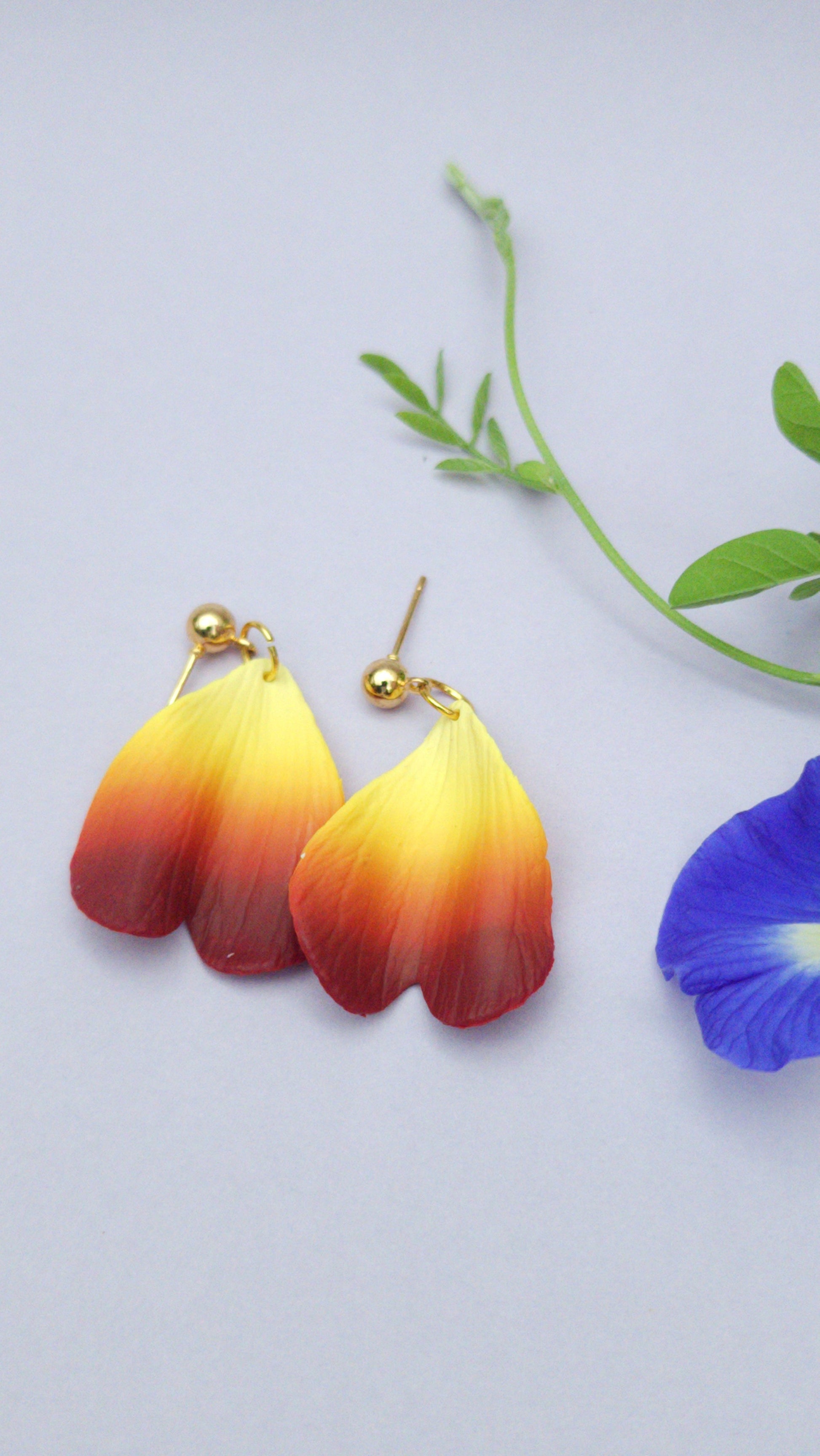 Capture the magic of falling leaves with our Autumn Petals earrings — a handcrafted ode to the cozy, golden glow of the season. Each petal is sculpted from polymer clay and features a rich gradient from golden yellow to deep fall oak, reminiscent of crisp leaves and sunset skies.