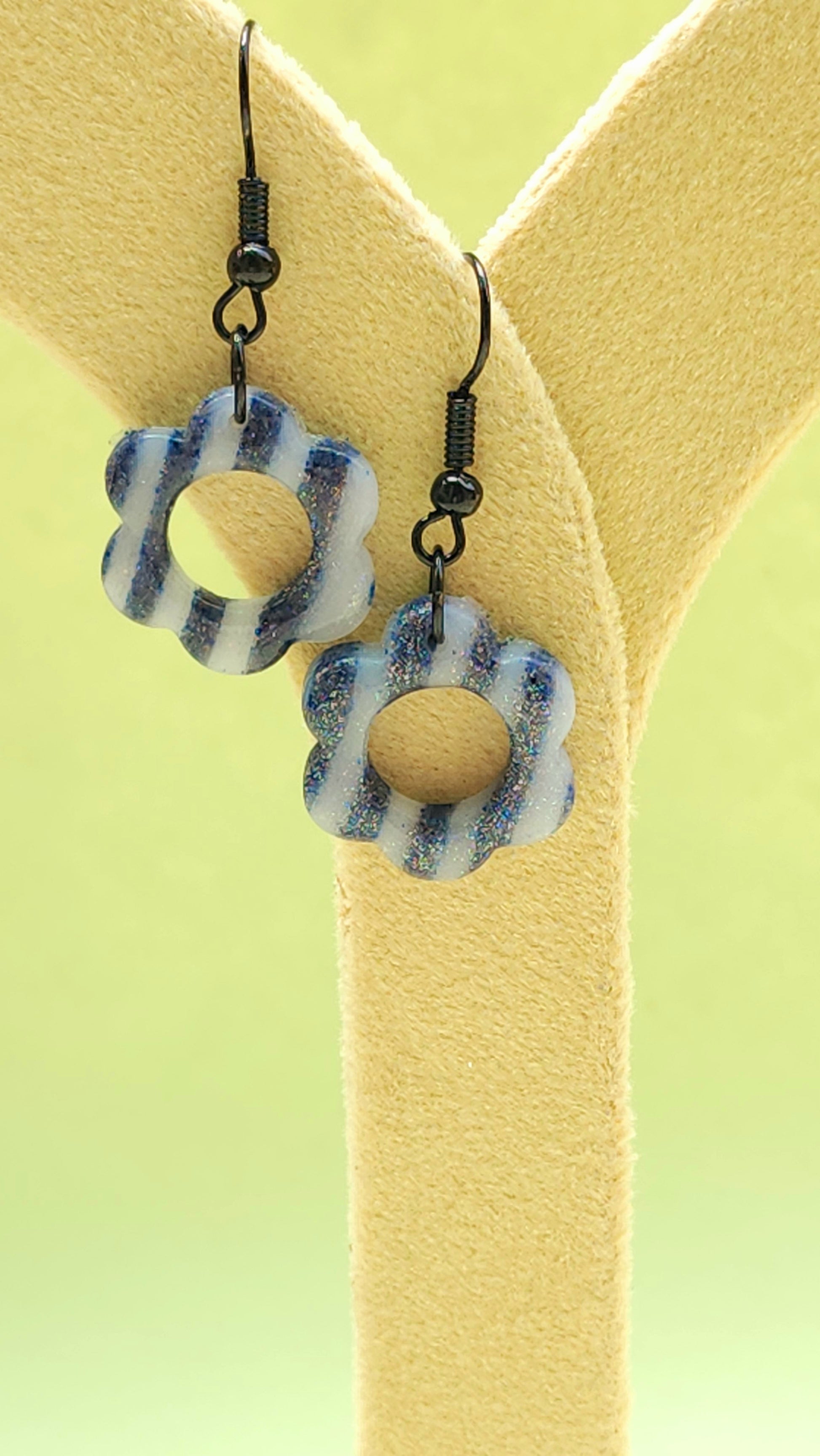 Translucent and bluish striped design with hints of silver glitter.