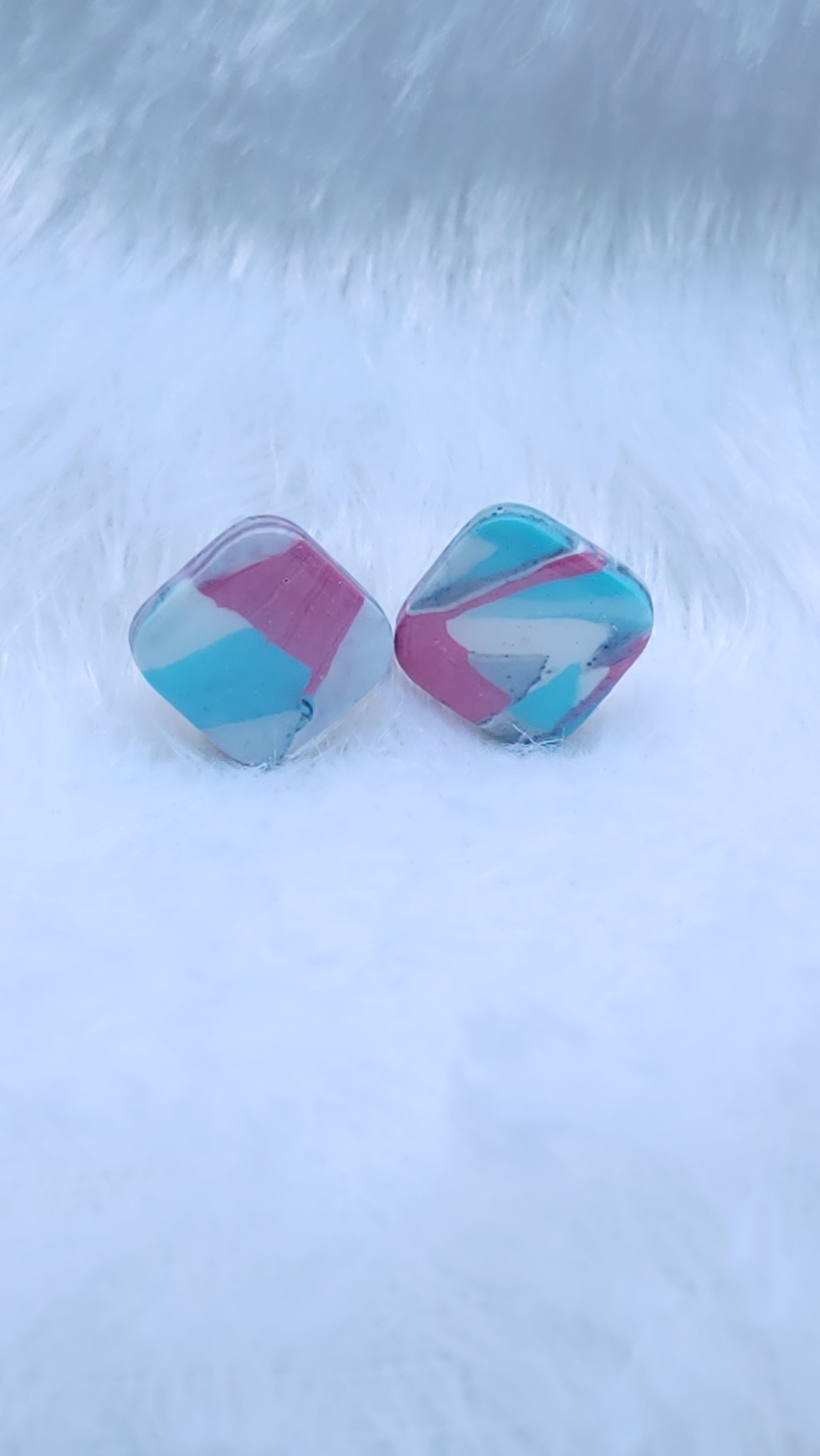 Blue, Pink, Grey and White terrazzo design. Slightly yellow due to resin.